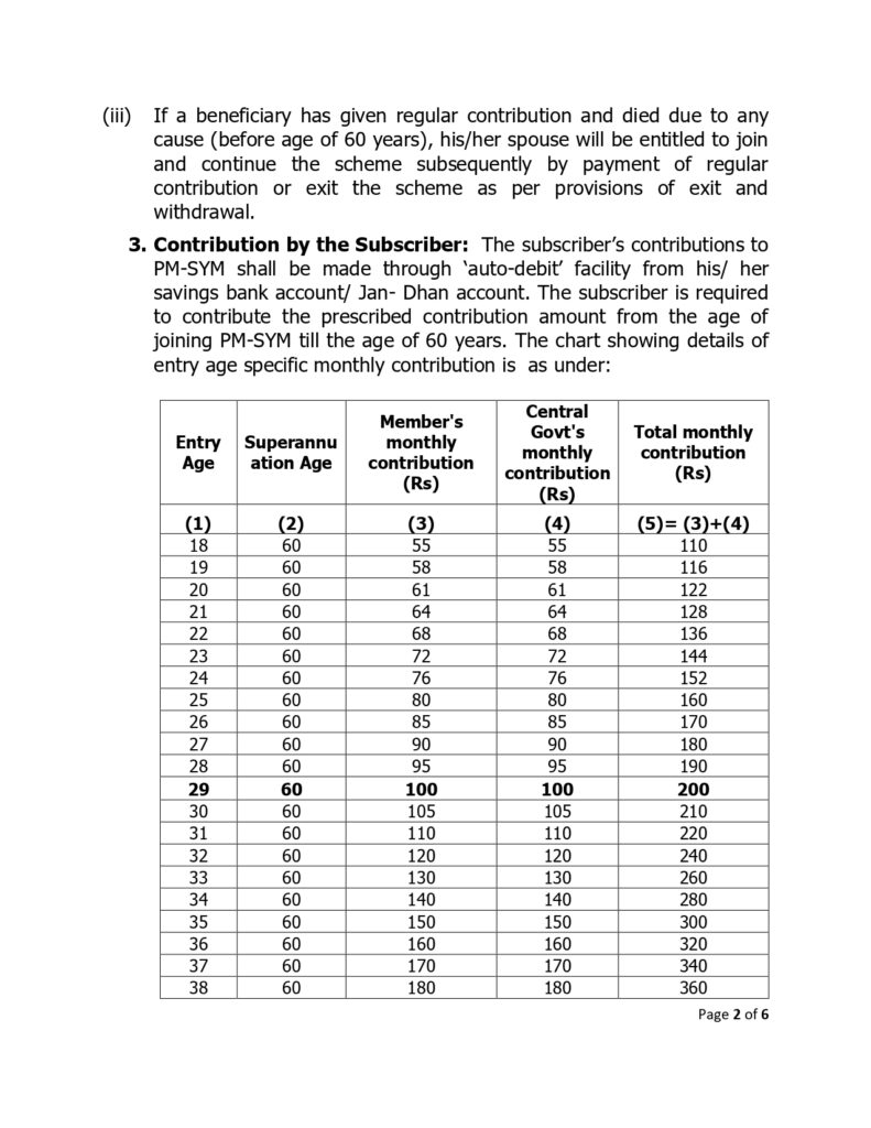 கீழே வயதுக்கு ஏற்ப மாதம் செலுத்த வேண்டிய ப்ரீமியம் தொகையும், அதற்கு மத்திய அரசு செலுத்தும் தொகையும் கொடுக்கப்பட்டுள்ளது.